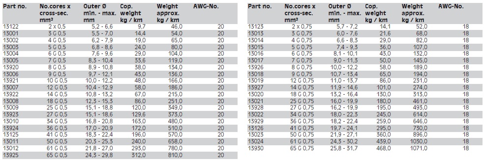 - کابل مخصوص کنترلی PVC مطابق با استانداردهای DIN VDE 0281 پارت 13