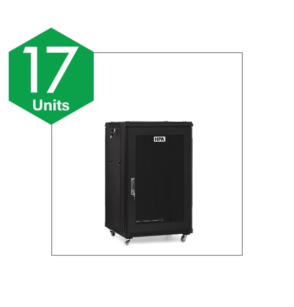 1- رک 17 یونیت ایستاده HpAsia دارای چرخ، یک عدد فن، پنل بازشو قفل دار، یک یسته پیچ و مهره رک