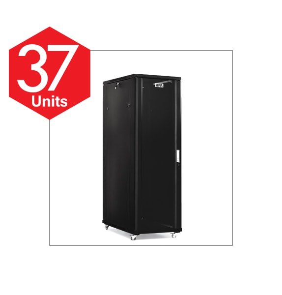 5- رک 37 یونیت ایستاده HpAsia دارای چرخ، یک عدد فن، پنل بازشو قفل دار، یک یسته پیچ و مهره رک