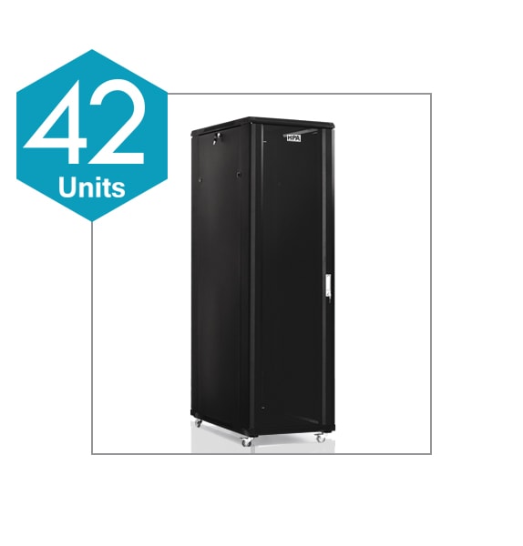 6- رک 42 یونیت ایستاده HpAsia دارای چرخ، یک عدد فن، پنل بازشو قفل دار، یک یسته پیچ و مهره رک