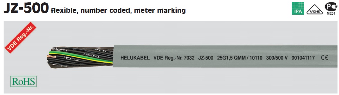 - کابل مخصوص کنترلی PVC مطابق با استانداردهای DIN VDE 0285-525-2-51