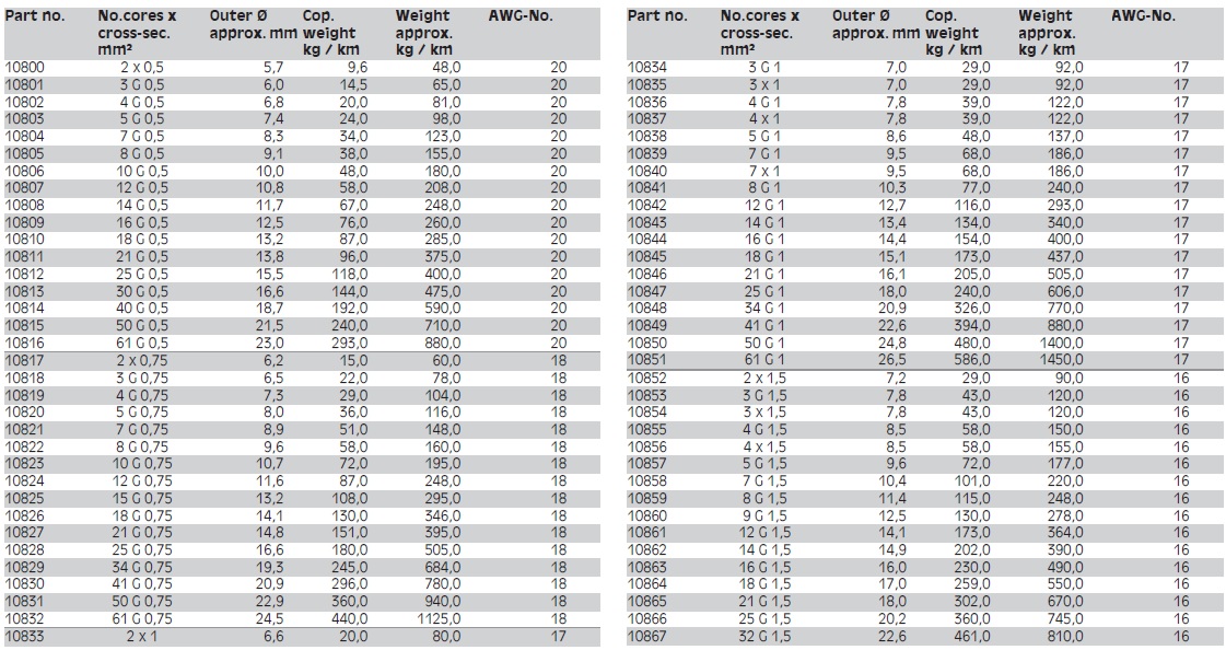 - کابل مخصوص کنترلی PVC مطابق با استانداردهای DIN VDE 0281 و IEC60227