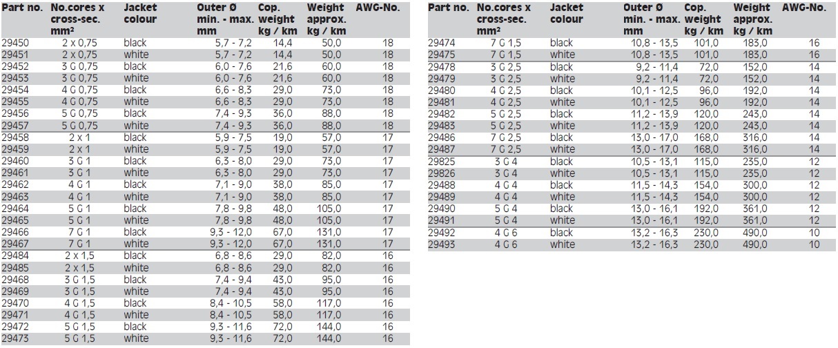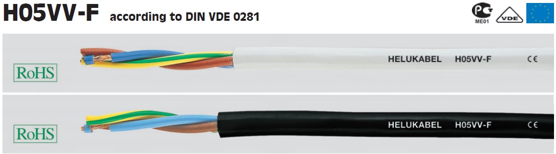 - کابل مخصوص کنترلی PVC مطابق با استانداردهای DIN VDE 0281 و IEC60227