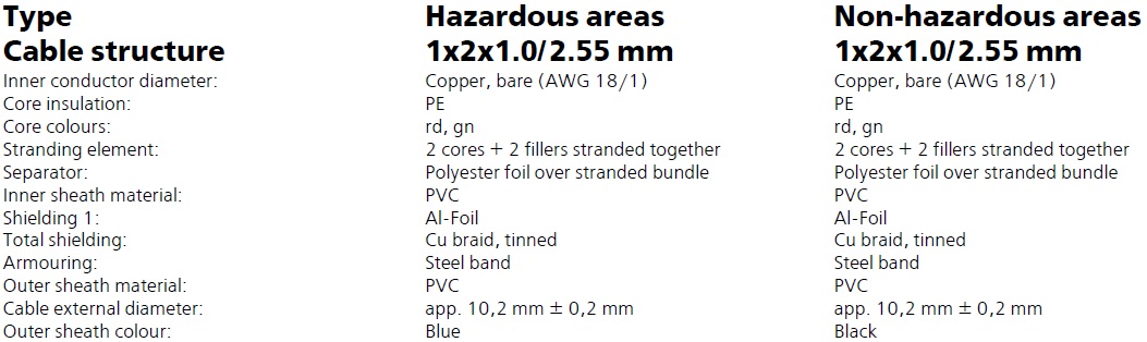 ویژگیهای کابل پروفی باس Profibus PA fixed installed armoured: