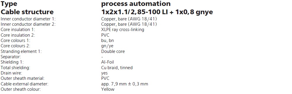 کابل فیلدباس flexible TypeA + gnye شامل یک هادی اضافه بر اساس استاندارد بر اساس مشخصات